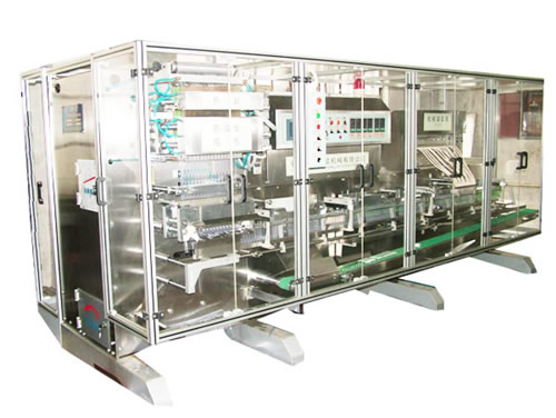 放倦、安瓶成型、灌裝、封尾、打批號、切尾、分切等22個工位由程序控制,連續自動完成。